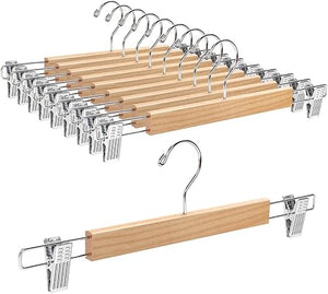 Topia Home Wooden Pants & Skirt Hangers with Clips – 10 Pack